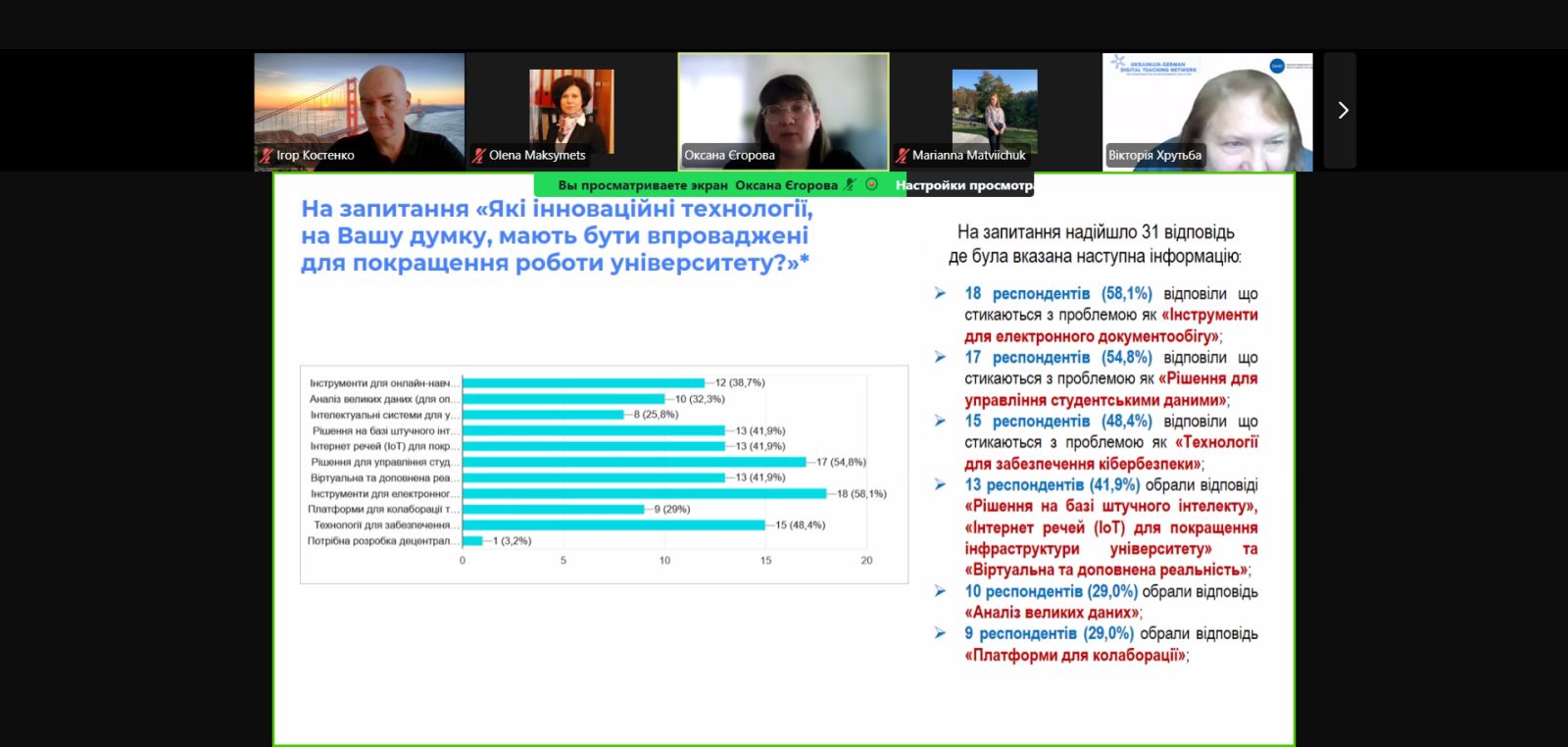 - реалізація опитування щодо розробки стратегії цифровізації вищої освіти України;
