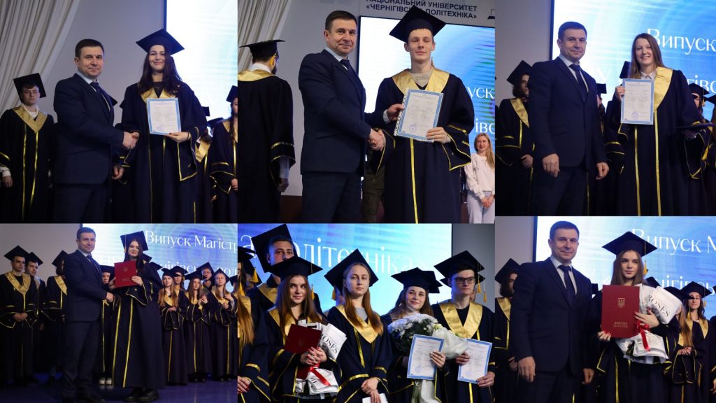 Ректор університету, Олег Новомлинець, звернувся до випускників із натхненною промовою. Ректор висловив щирі побажання впевнено приймати рішення, досягати вершин у професії та пам’ятати, що звання випускника Чернігівської політехніки – це почесний знак, який гордо носять упродовж життя.