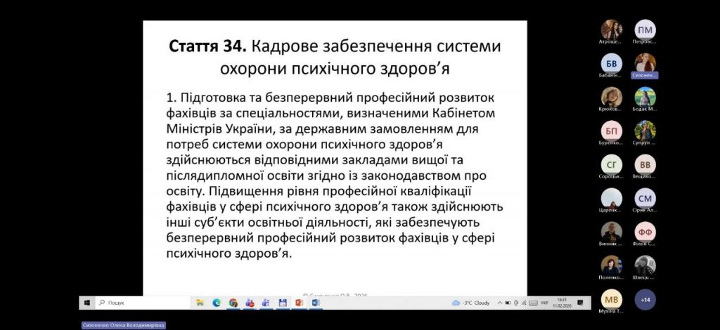 Тому, 11 лютого для студентів спеціальності “Психологія” бакалаврського і магістерського рівнів ВО кафедрою психології було проведено вебінар на тему “Закон України «Про систему охорони психічного здоров’я в Україні»”.