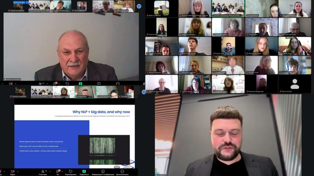 Знаковою подією пленарного засідання став міжнародний виступ представників VIZJA University (Варшава, Польща) – професора Yan Kapranov та докторки Bożena Iwanowska. У доповіді «Detecting Polish and Ukrainian Dialectisms with NLP: A Big-Data Approach to Speech Culture Formation in Higher Education» презентовано результати дослідження із застосуванням технологій обробки природної мови (NLP) для виявлення польських і українських діалектизмів.