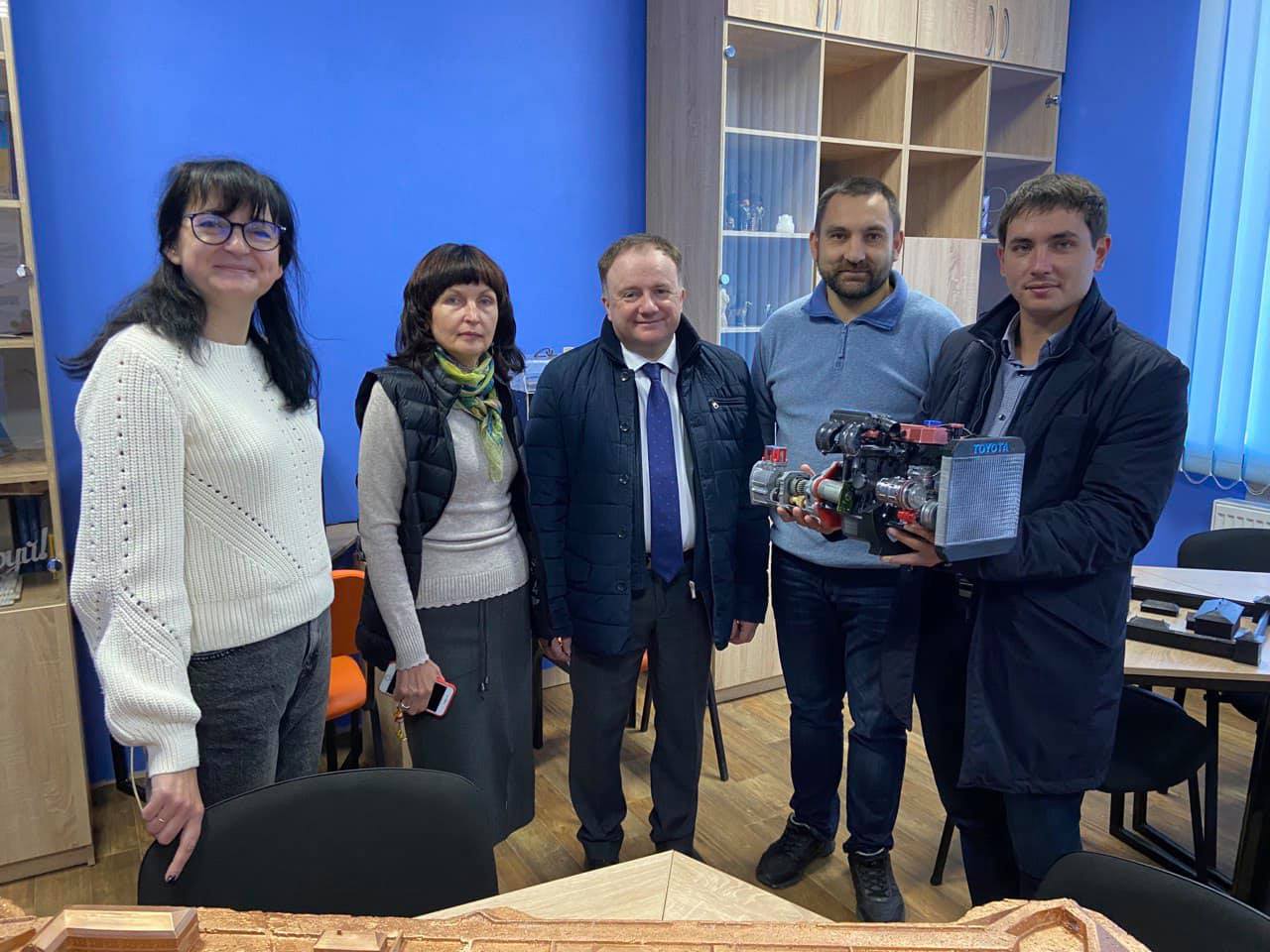 Також, в рамках візиту пана Олів‘є Ведріна, ми провели екскурсію по кафедрі автомобільного транспорту та галузевого машинобудування та університету, де він мав змогу познайомитися з нашими напрацюваннями та напрямками діяльності, як технічних так гуманірних напрямків.