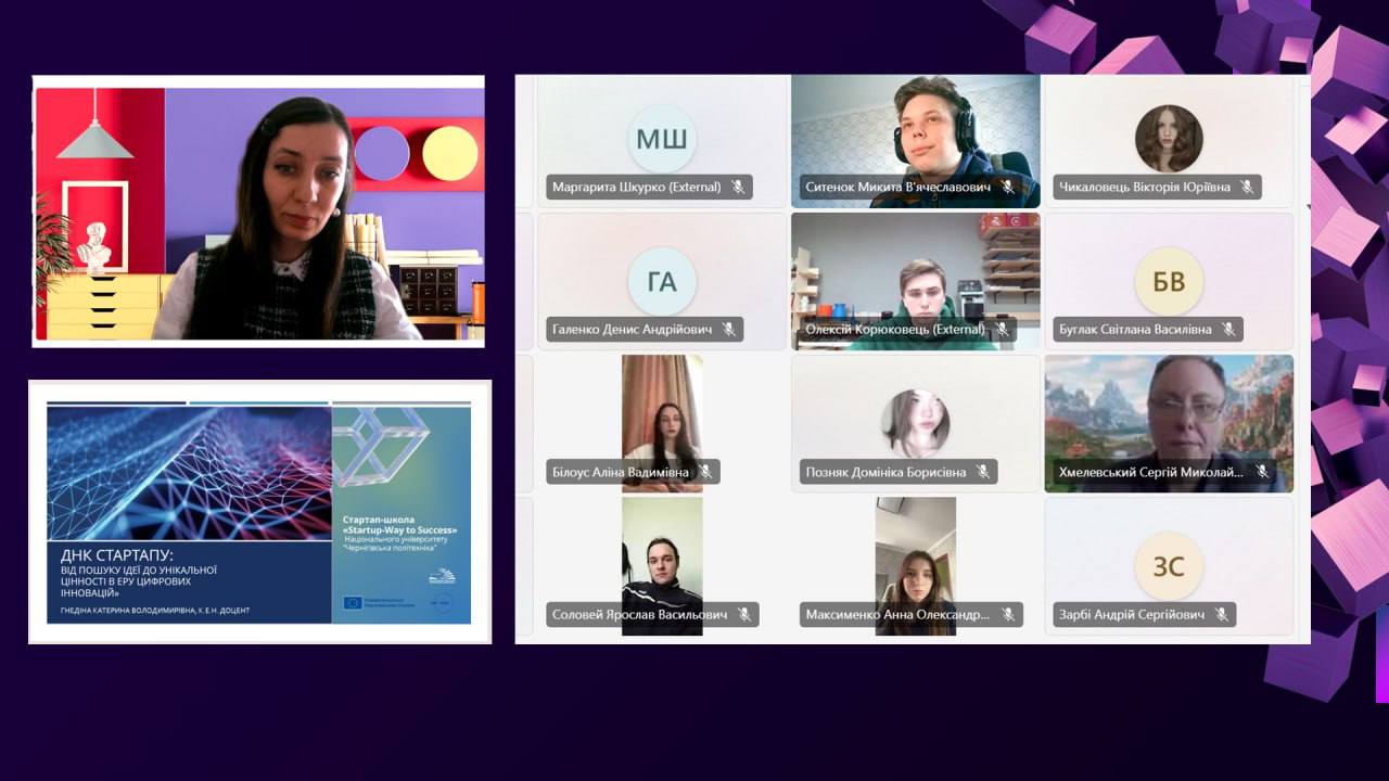 До першої інтерактивної лекції, проведеної координатором розвитку стартапів, інновацій та проєктного навчання, к.е.н. Гнедіною Катериною Володимирівною, долучилося близько 50 учасників, серед них: учні закладів загальної середньої освіти, здобувачі вищої освіти, викладачі, науковці та інноватори з Чернігівського регіону.