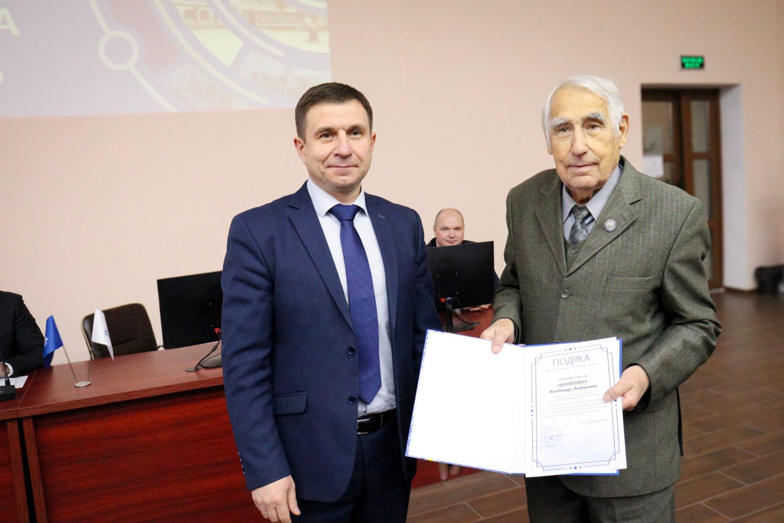 Подяку університету було оголошено Іванишину Володимиру Андрійовичу, доктору геологічних наук, професору кафедри геодезії, картографії та землеустрою – за багаторічну сумлінну працю, значний особистий внесок у підготовку висококваліфікованих спеціалістів, плідну науково-педагогічну діяльність та з нагоди 65-річчя НУ “Чернігівська політехніка”.