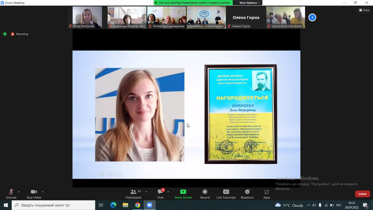 Напередодні професійного свята – Дня працівників освіти, Чернігівською обласною військовою адміністрацією було відзначено, в тому числі і наших працівників.