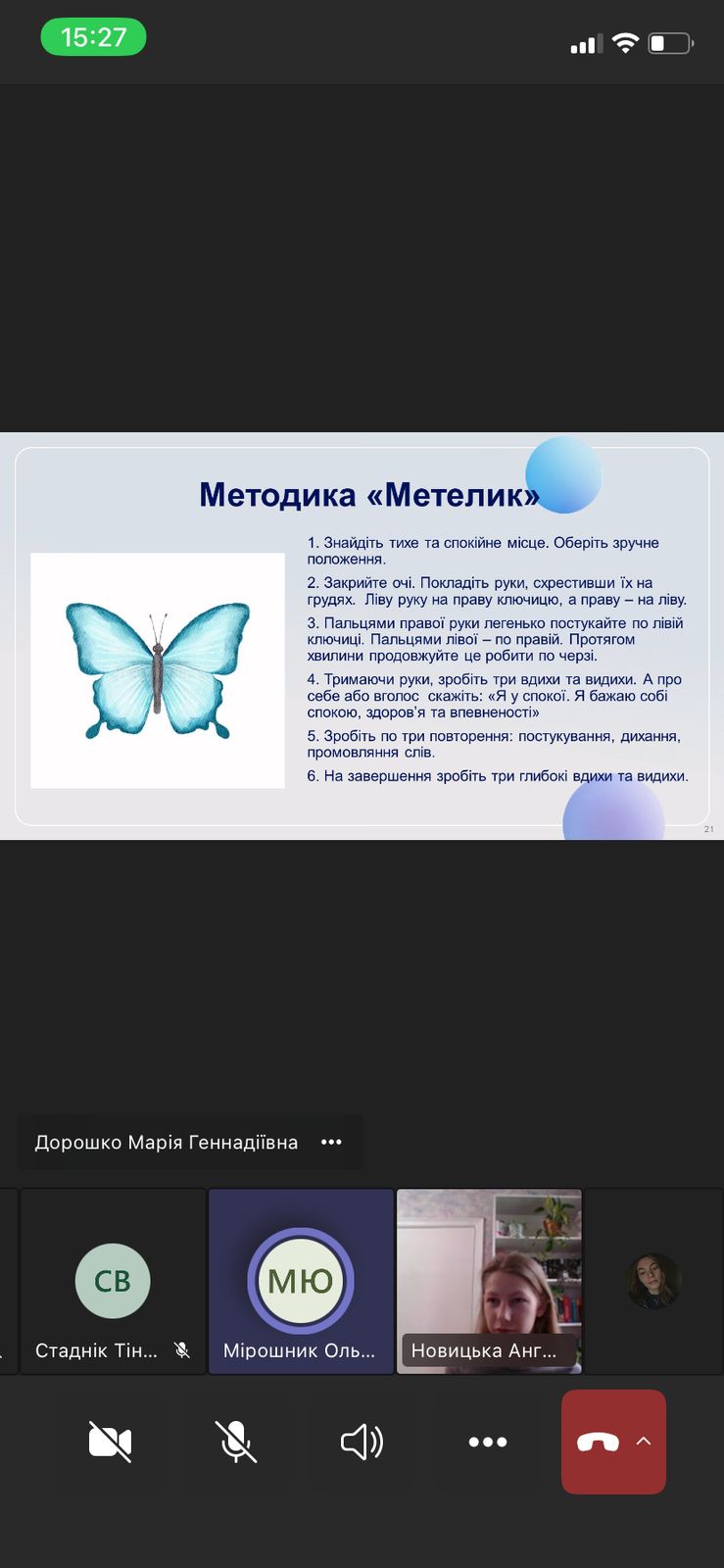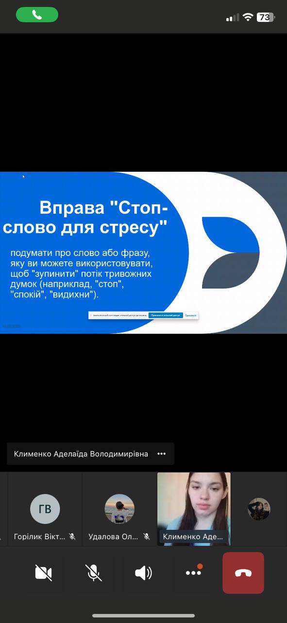 - Тренінг «Тривога без паніки: як дати собі раду» — учасники ознайомились із практиками стабілізації та вправами на зниження тривожності.