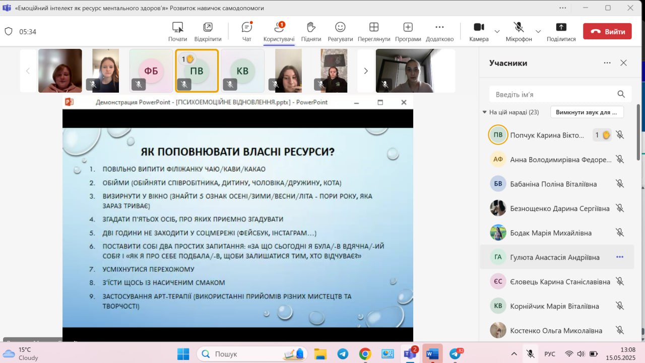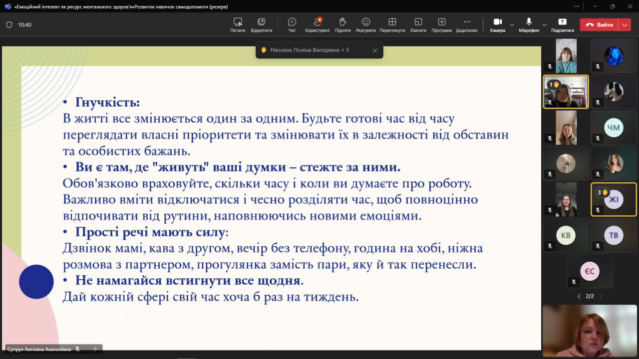Захід сприяв формуванню усвідомленого ставлення до власного психічного здоров’я та розвитку навичок емоційної саморегуляції.