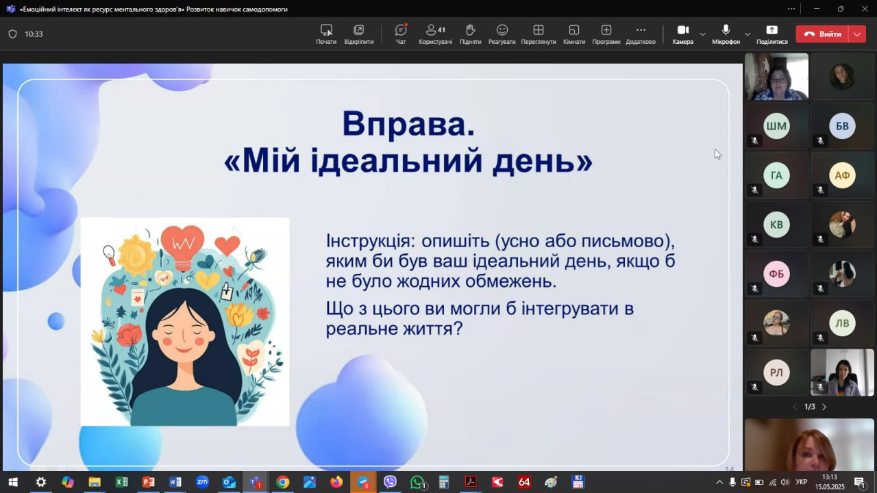 Особливе захоплення викликала вправа «Стоп-слово для стресу» — учасники вигадували власні «якорі», які допомагають зупинити негативну хвилю думок у стресових ситуаціях.