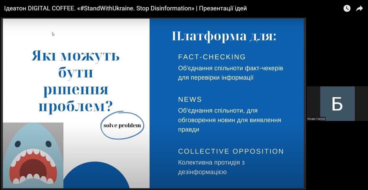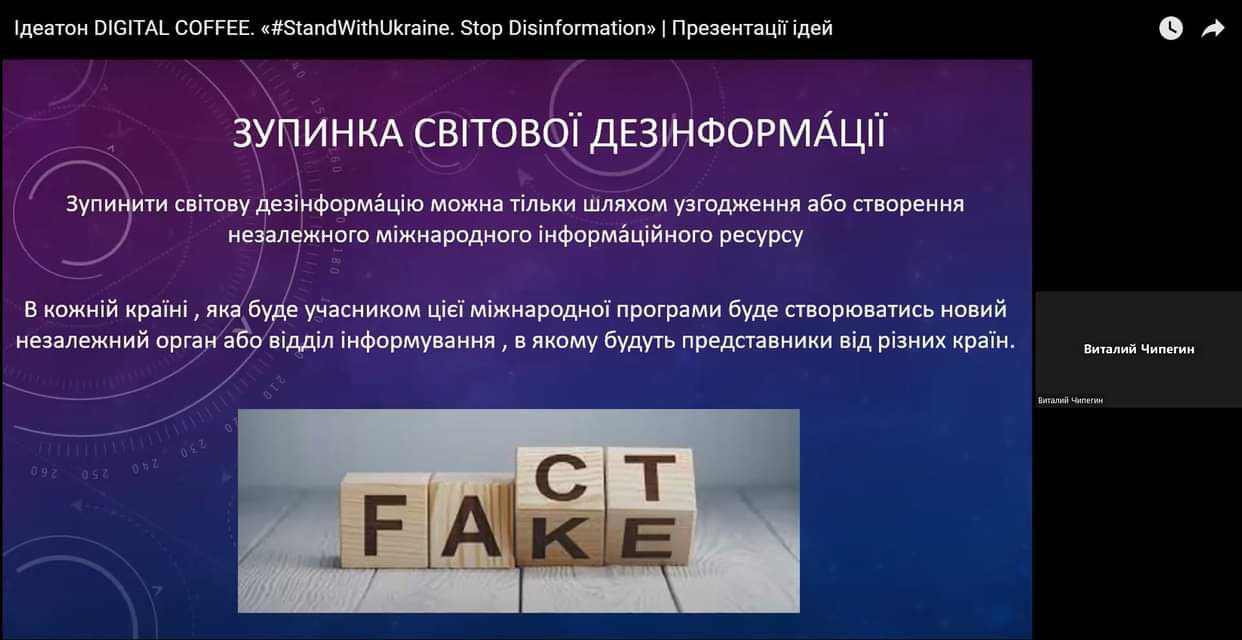 24 січня відбувся всеукраїнський онлайн ідеатон (конкурс інноваційних ідей), що отримав назву “DIGITAL COFFEE”. Захід було присвячено пошуку вдалих ідей і проєктів, які покликані допомогти Україні розв’язувати проблему боротьби з ворожою дезінформацією.