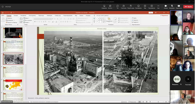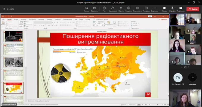 Напередодні вшанування пам’яті жерт радіаційних аварій і катастроф доцент кафедри філософії і суспільних наук Колєватов О.О. провів бесіду зі здобувачами вищої освіти ННІ електронних та інформаційних технологій на тему «26 квітня – Міжнародний день пам’яті Чорнобиля».