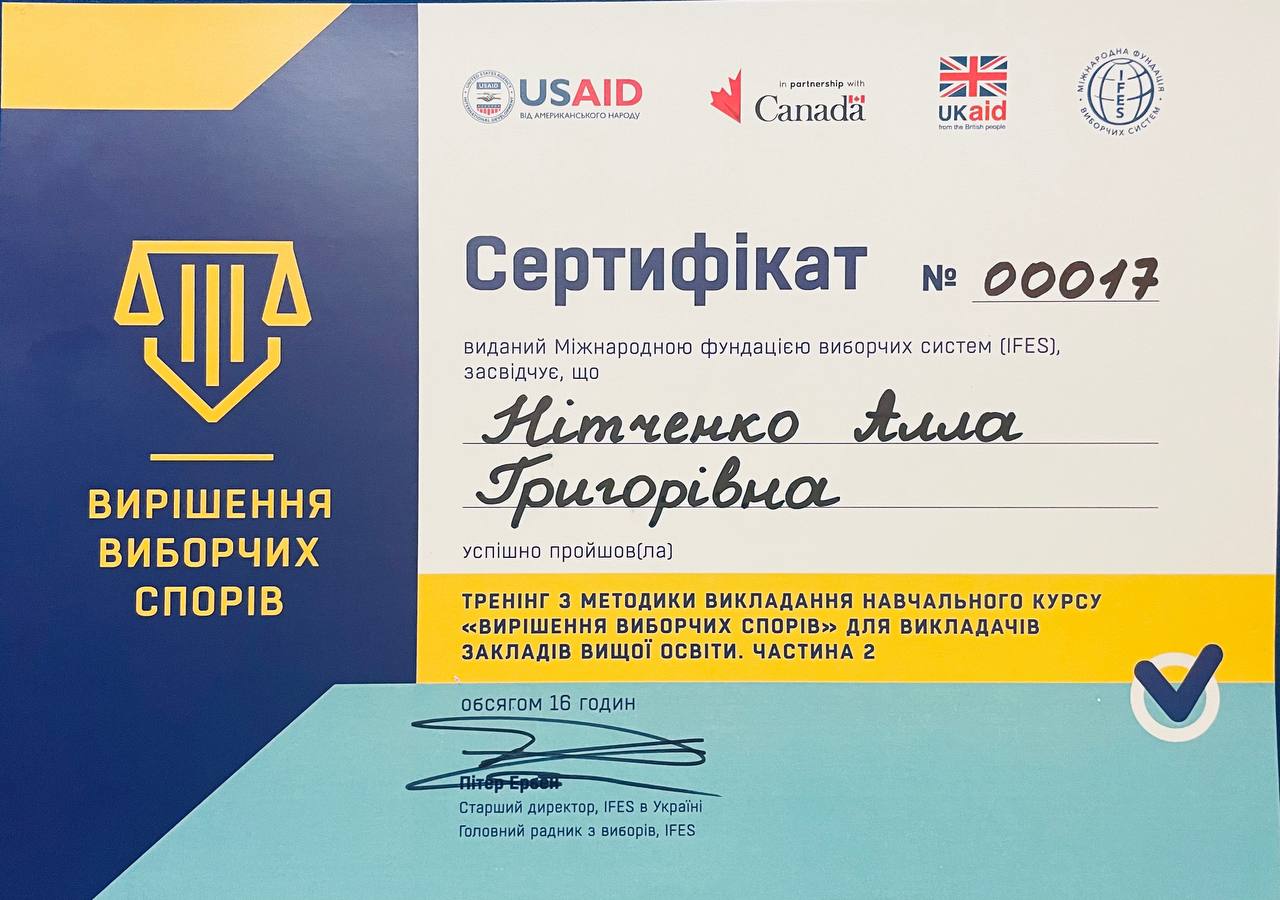 «Вирішення виборчих спорів» – назва інноваційного навчального курсу, який буде запроваджено в НУ «Чернігівська політехніка» на ОП «Правоохоронна діяльність» в 2024-2025 н.р.
