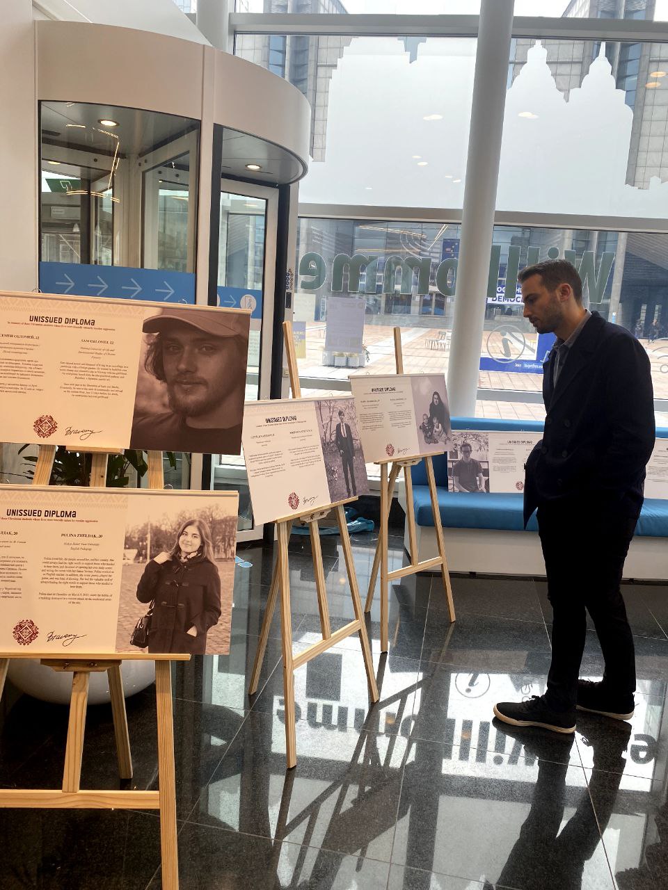 Виставка «Невидані дипломи» розкриває історії 40 загиблих на війні українських студентів. У 2024 році він проходить в різних установах світу 24 лютого, у річницю дня, коли вся Україна прокинулася від вибухів.