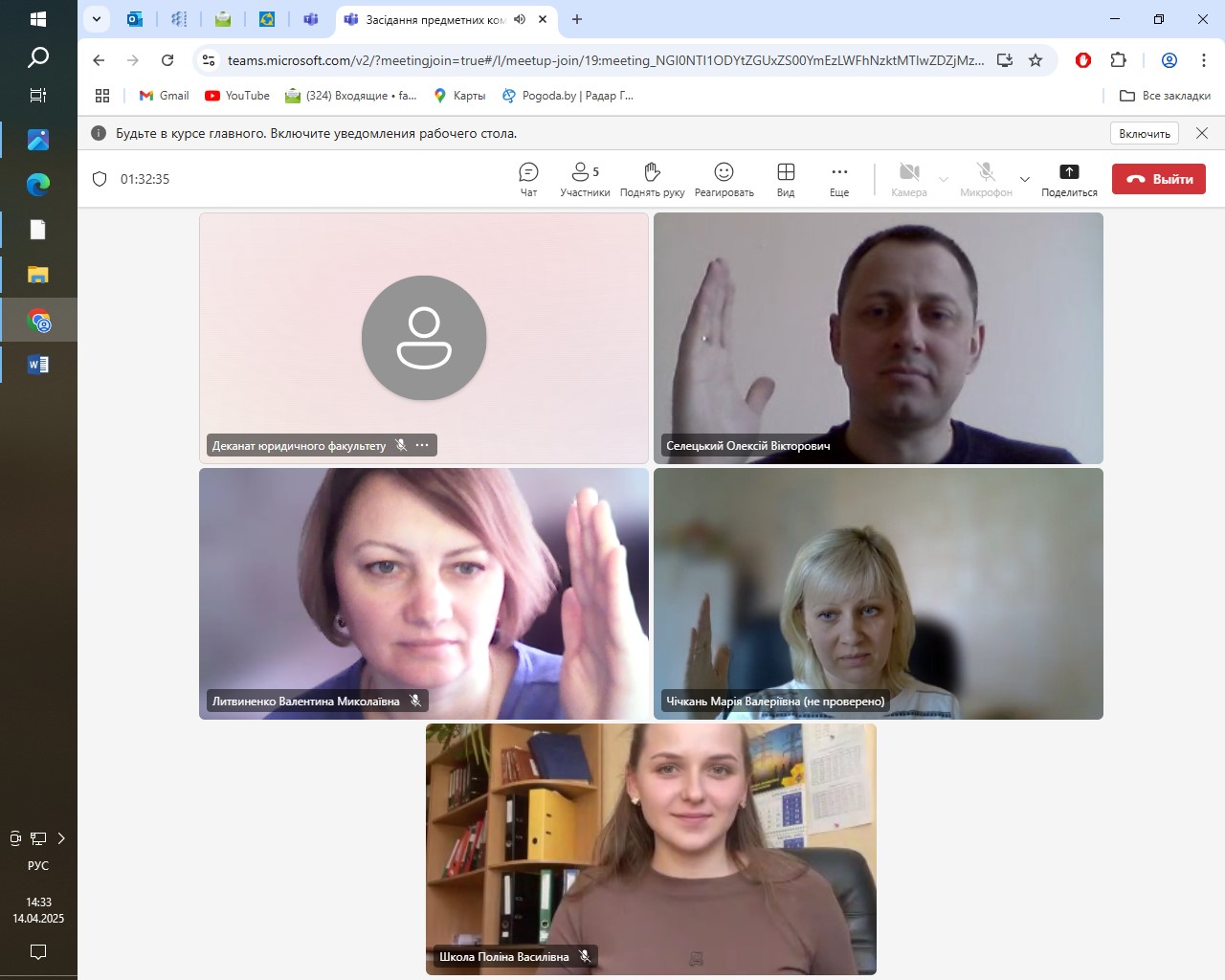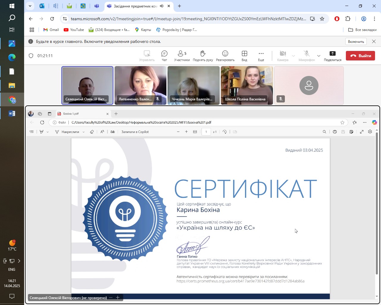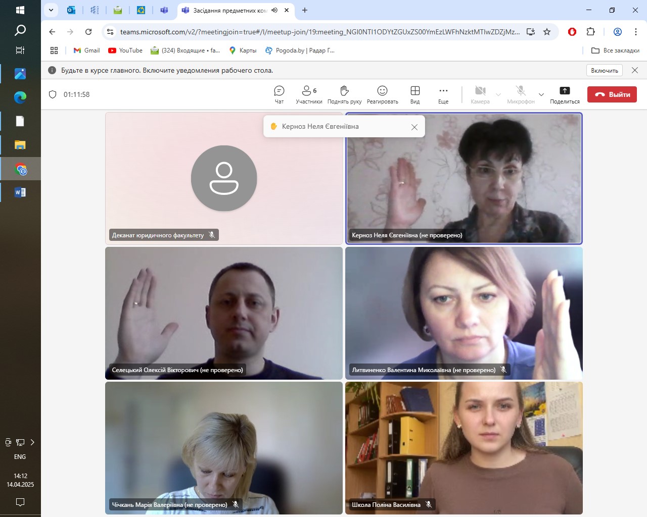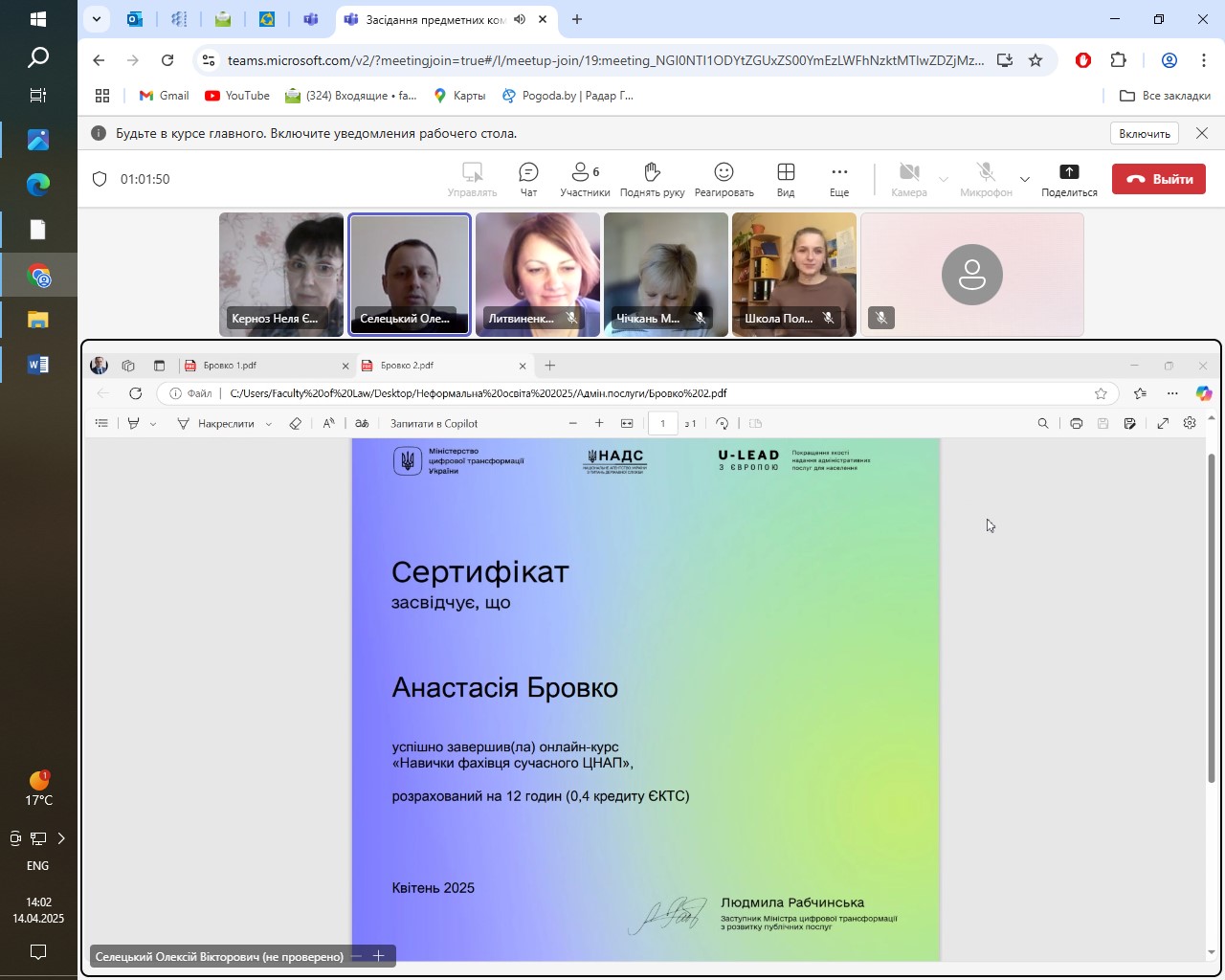14 квітня 2025 року на юридичному факультеті відбулися засідання предметних комісій з валідування результатів неформальної освіти з освітніх компонентів «Правове регулювання адміністративних послуг» та «Міжнародне публічне право та право Європейського Союзу» для студентів першого (бакалаврського) рівня вищої освіти спеціальності 081 Право, освітніх програм «Право» та «Кримінальна юстиція (Суд. Прокуратура. Адвокатура)». Предметні комісії були створені відповідно до розпоряджень декана юридичного факультету.