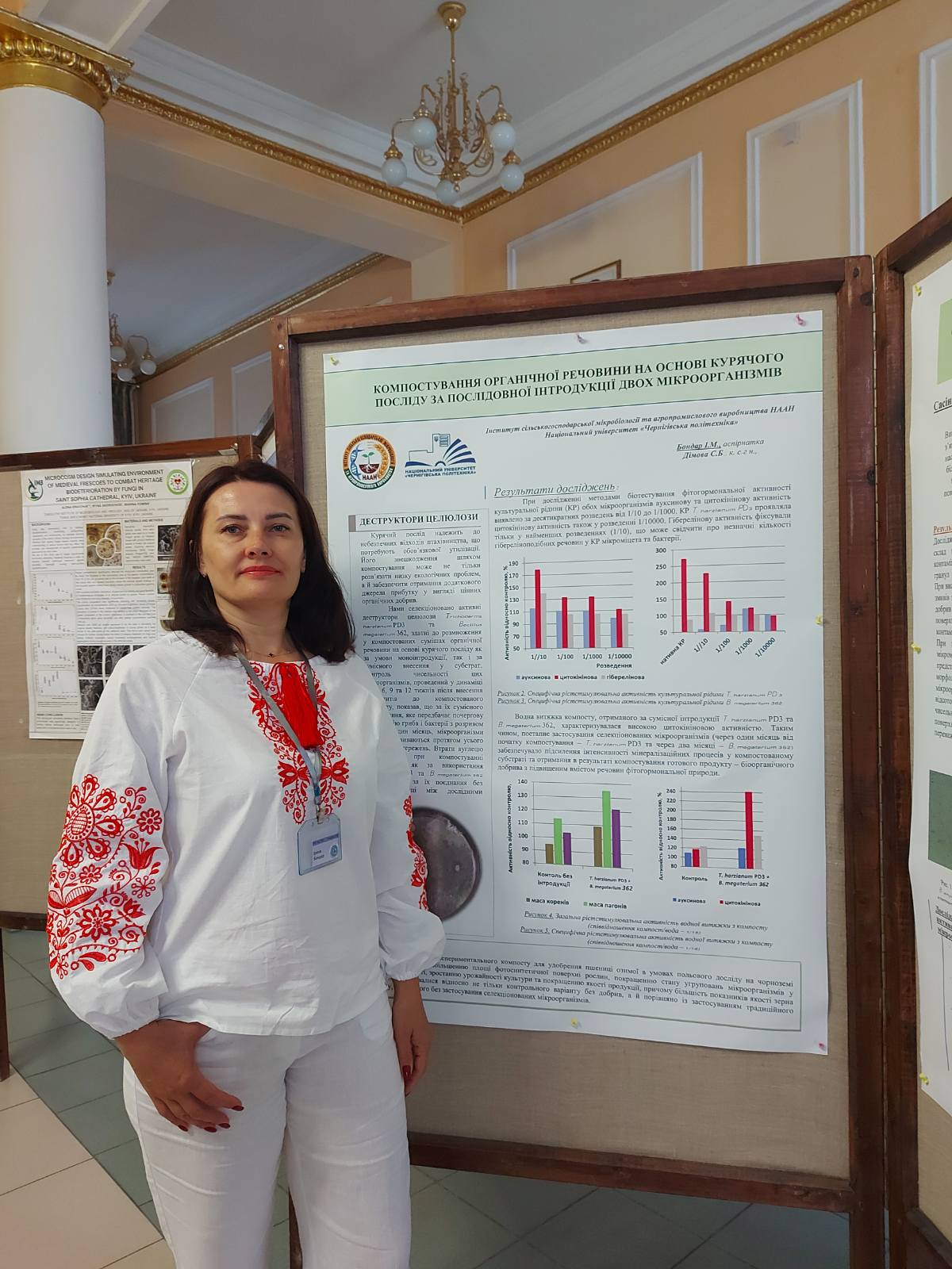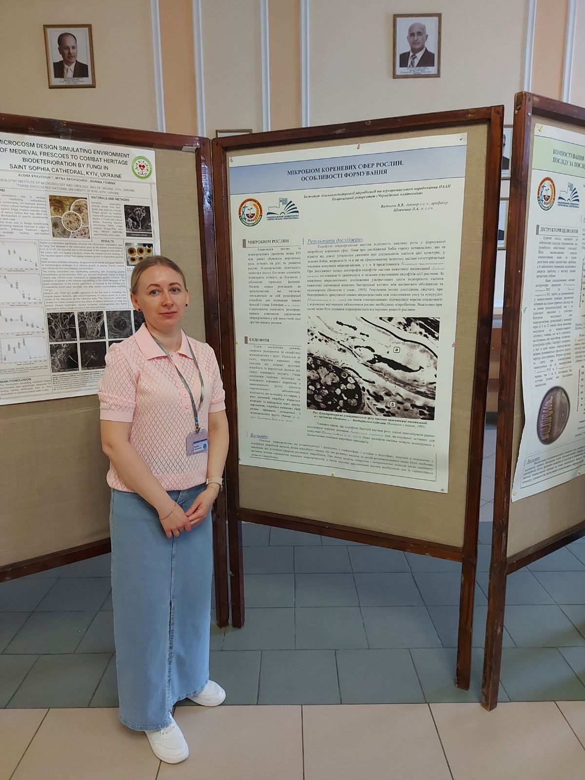 Доцент кафедри Шевченко Любов Анатоліївна у стендовій доповіді представила результати наукових досліджень «Мікробіом кореневих сфер рослин. Особливості формування».