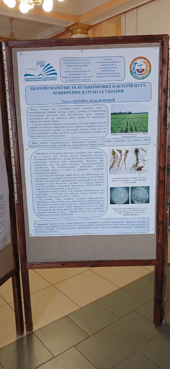 Старший викладач Логоша Ольга Володимирівна прийняла участь зі стендовою доповіддю на тему «Біорізноманітність бульбочкових бактерій нуту, поширених в ґрунтах України».