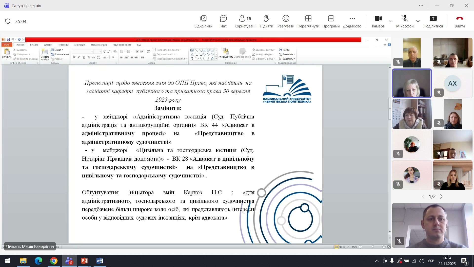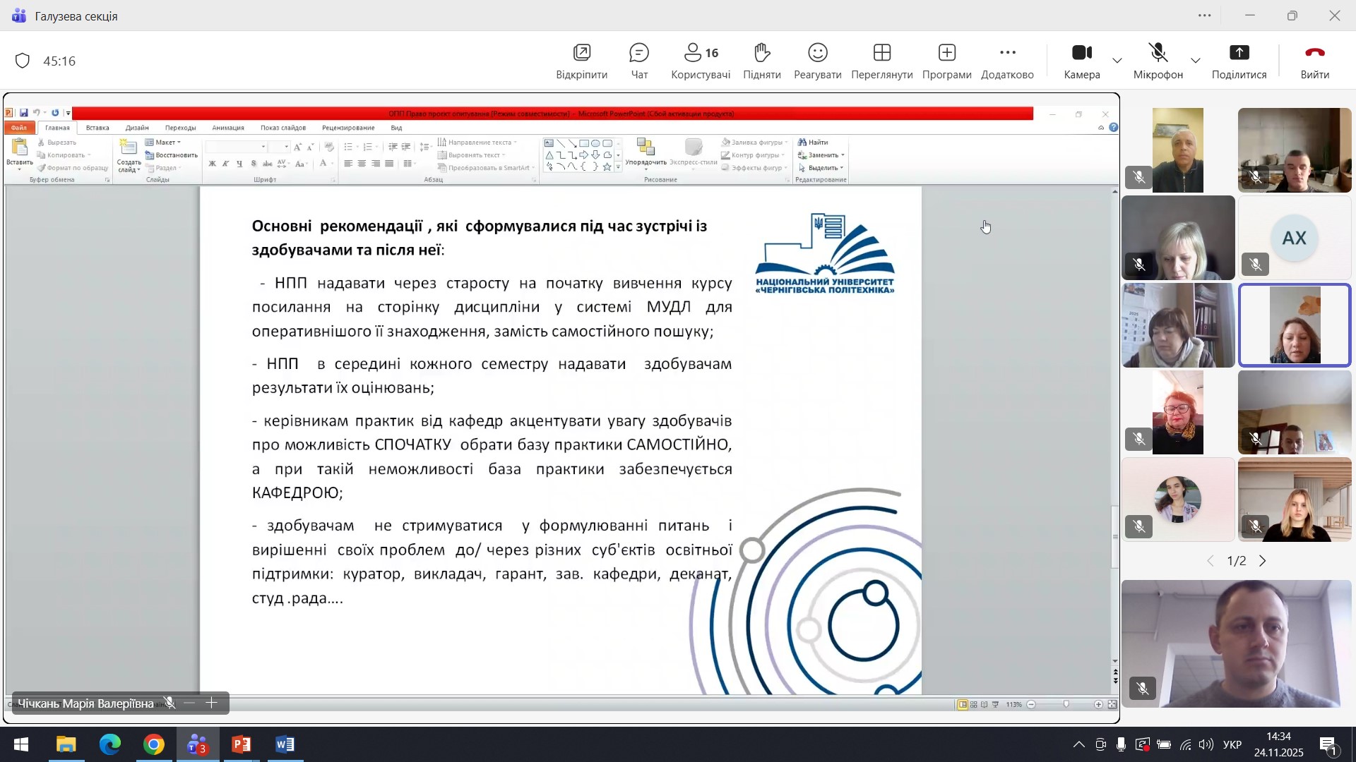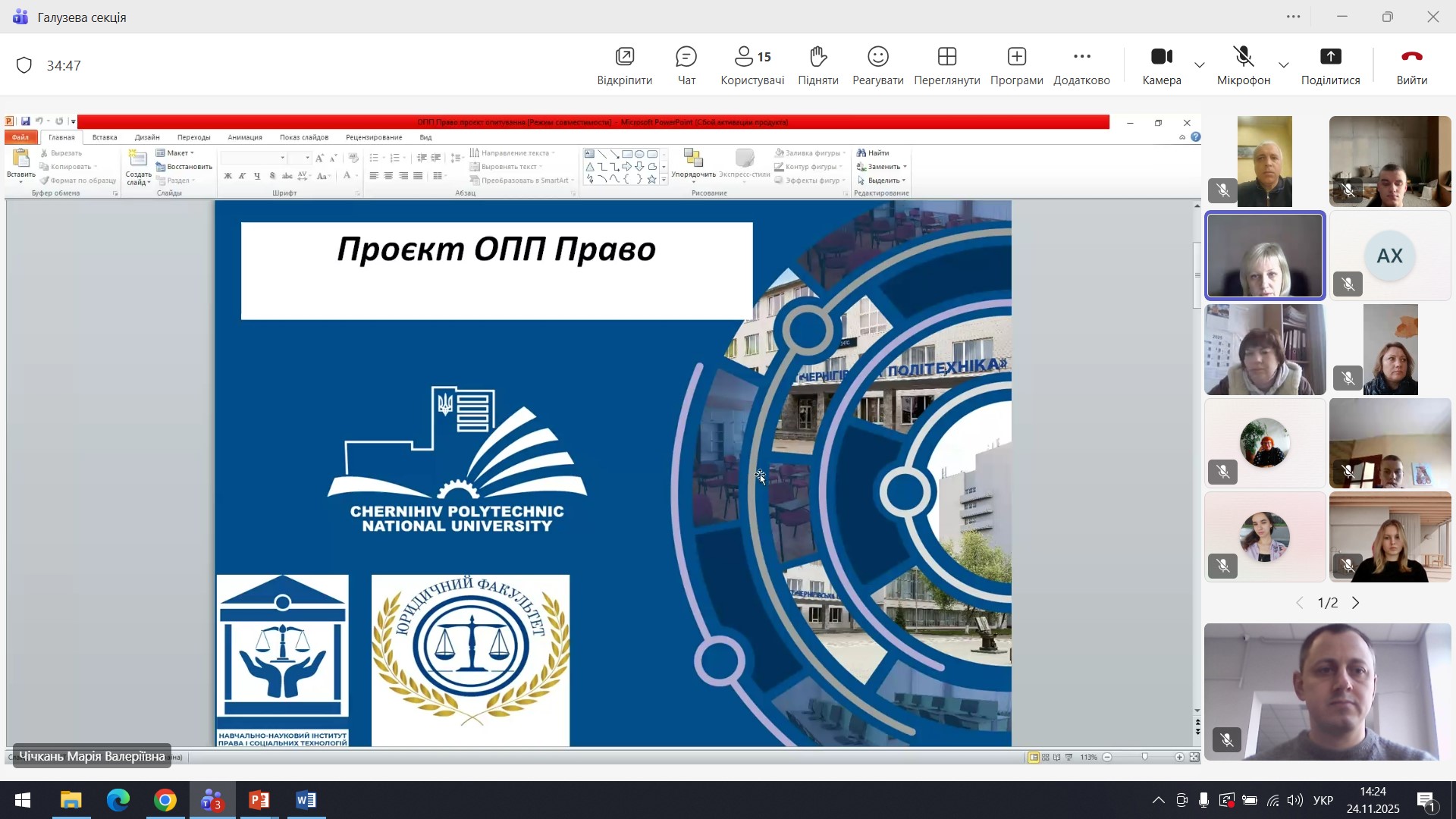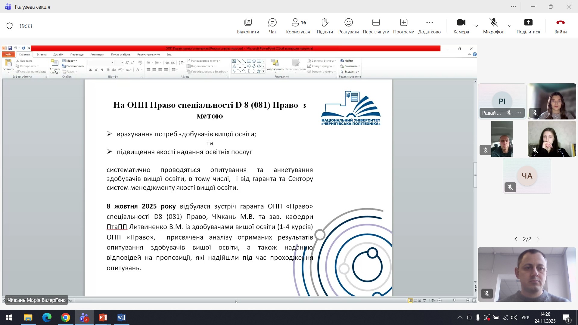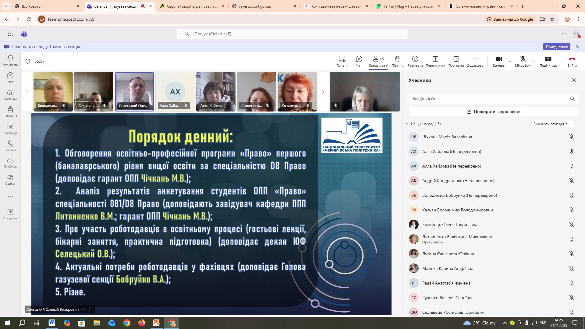 24 листопада 2025 року відбулося чергове засідання Галузевої секції «Право і правоохоронна діяльність» Ради роботодавців Національного університету «Чернігівська політехніка».