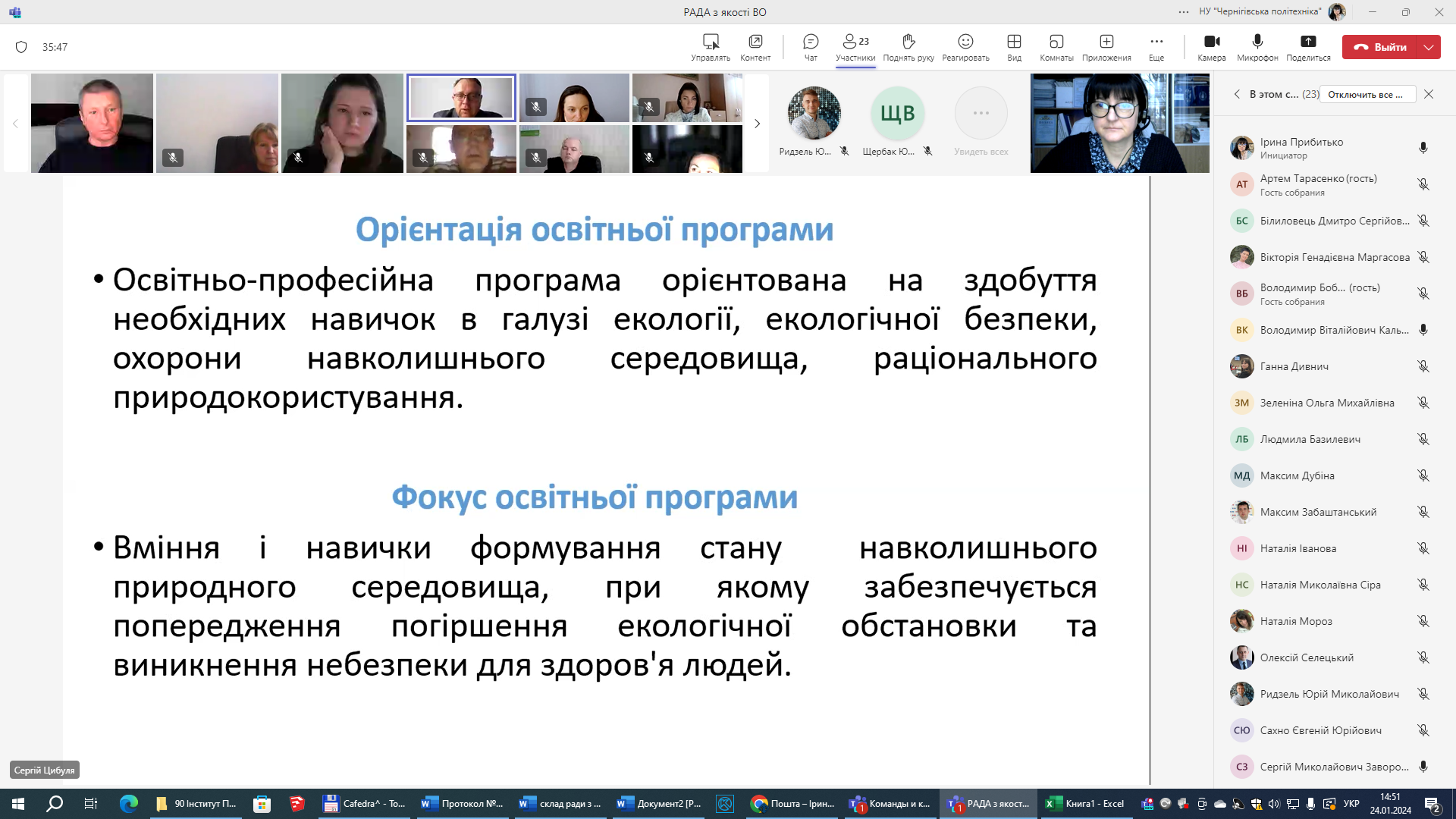 24 січня о 14:30 в режимі онлайн відбулося засідання Ради із забезпечення якості вищої освіти Національного університету «Чернігівська політехніка».