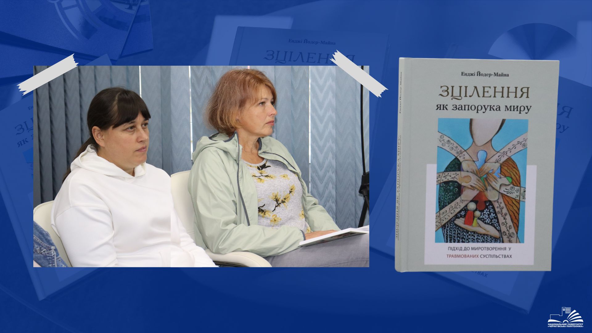 17 вересня 2025 року студенти, викладачі та стейкхолдери Національного університету «Чернігівська політехніка» долучилися до презентації книги американської авторки, директорки Інституту Стійкості, учасниці групи щодо підтримки України при Державному університеті Флориди Енджі Йодер Майни «Зцілення як запорука миру: підхід до миротворення у травмованих суспільствах».