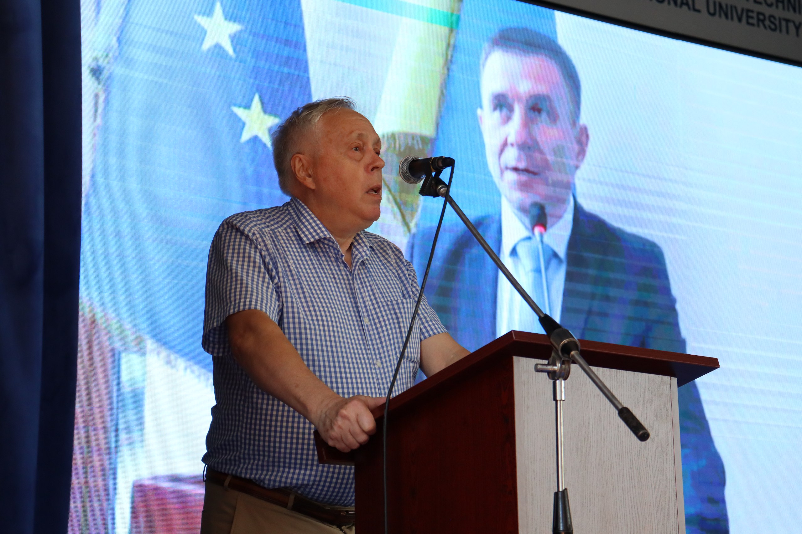 Спершу з вітальним словом звернувся Михайло Дмитрович Кайдаш, кандидат технічних наук, доцент, голова профспілкової організації співробітників нашого університету, який є випускником кафедри технології машинобудування 1974 року з відзнакою. Він коротко описав сьогодення університету та привітав своїх колишніх одногрупників.