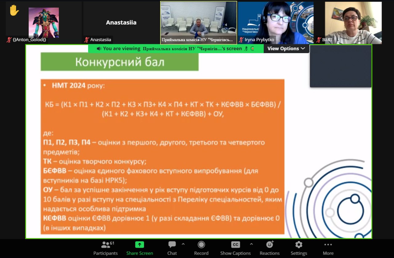 11 квітня 2024 року в Національному університеті “Чернігівська політехніка” відбулася онлайн-зустріч щодо особливостей вступної кампанії 2024 року.