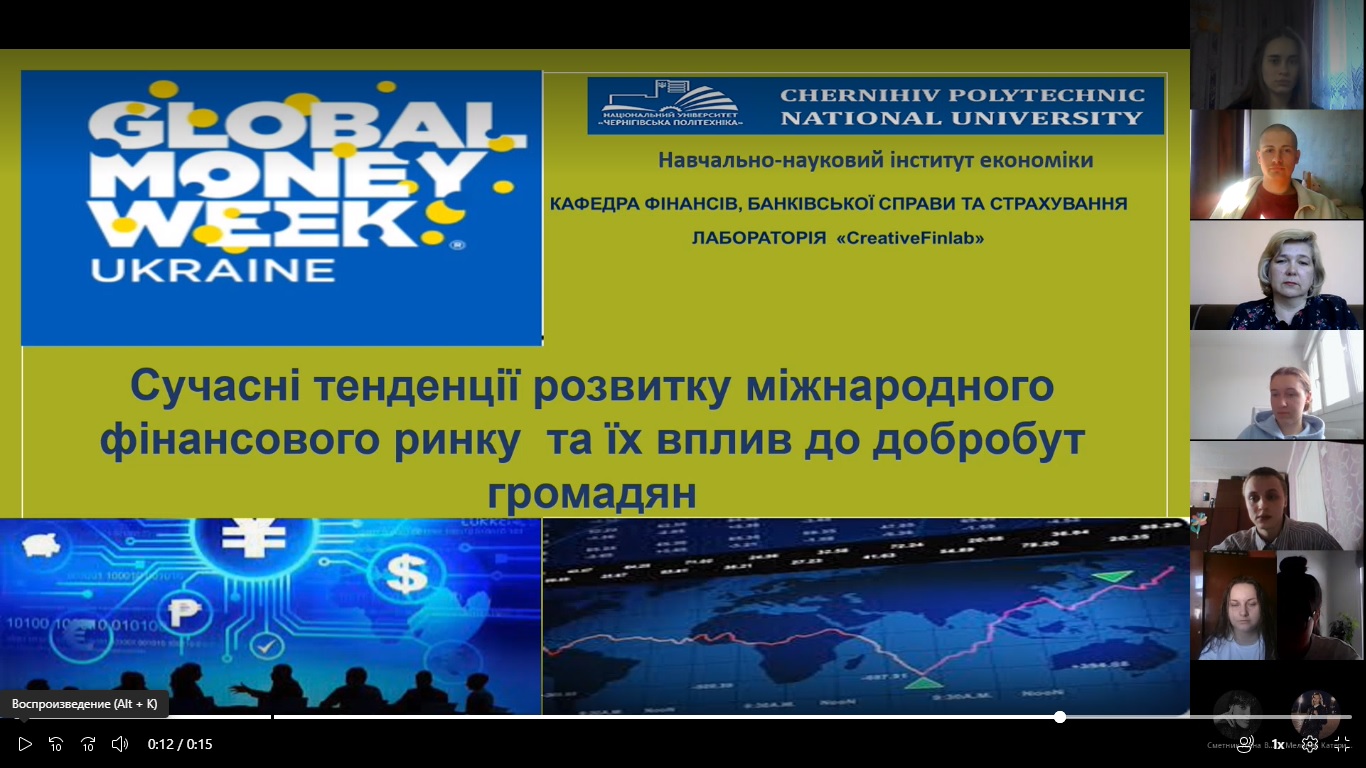30.03.2023р. керівницею навчальної лабораторії «CreativeFinlab» Національного університету «Чернігівська політехніка» д.е.н., професоркою О. М. Парубець було проведено онлайн-вебінар на тему «Сучасні тенденції розвитку міжнародного фінансового ринку та їх вплив на добробут громадян» для здобувачів освітнього ступеня «бакалавр» спеціальності 072 «Фінанси, банківська справа та страхування» 3 курсу гр. ФК-201.