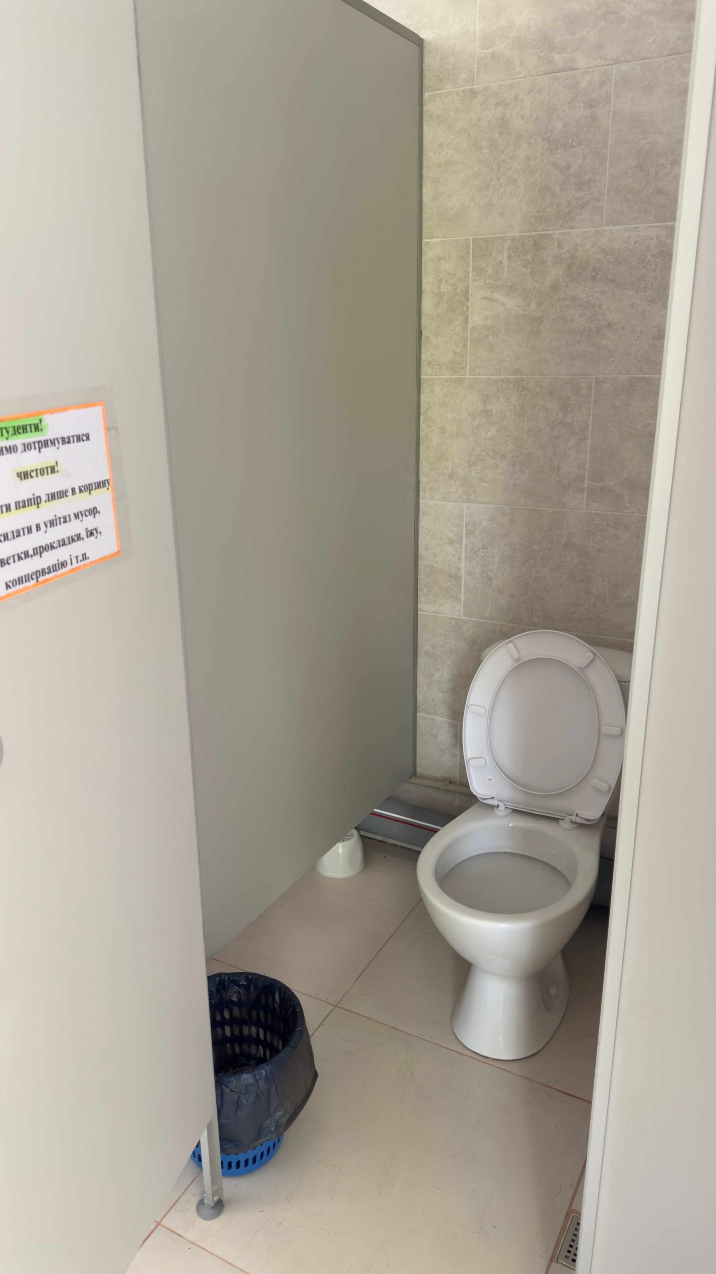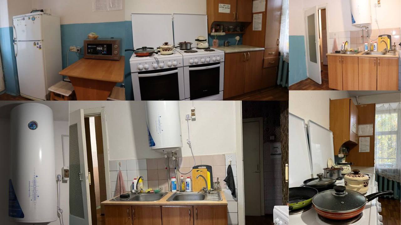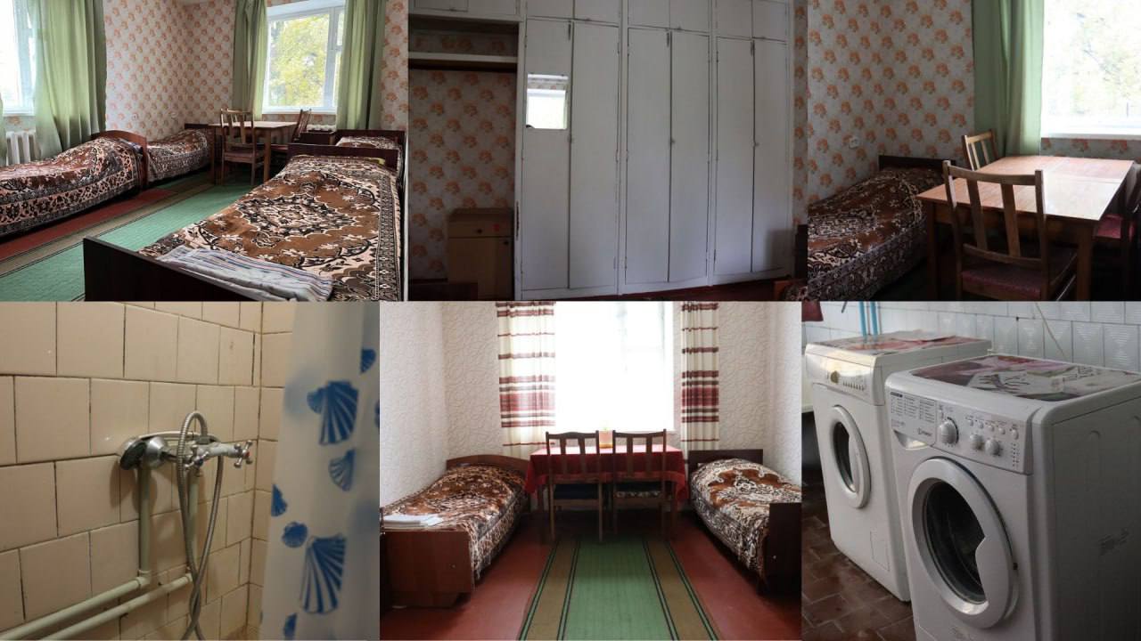 Гуртожиток коридорного типу. В кімнатах проживає по 3 людини.