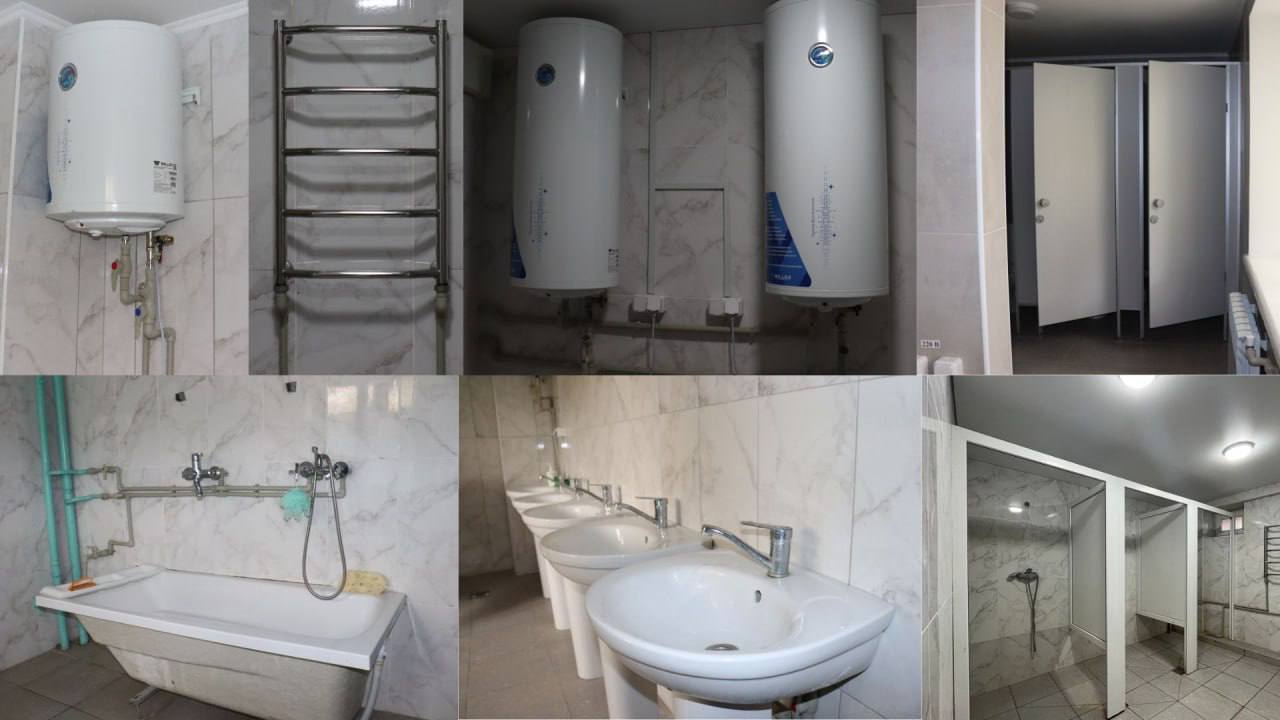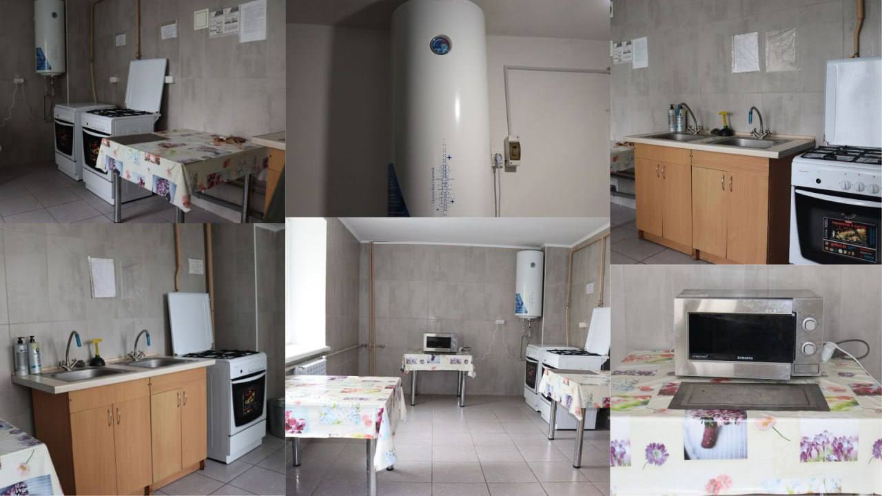 Санвузли, умивальники, кухня розташовані на кожному поверсі в кінці коридору. Має 2 загальні (чоловіча та жіноча) душові кімнати на першому поверсі. Всі кімнати обладнані необхідними для проживання меблями.
